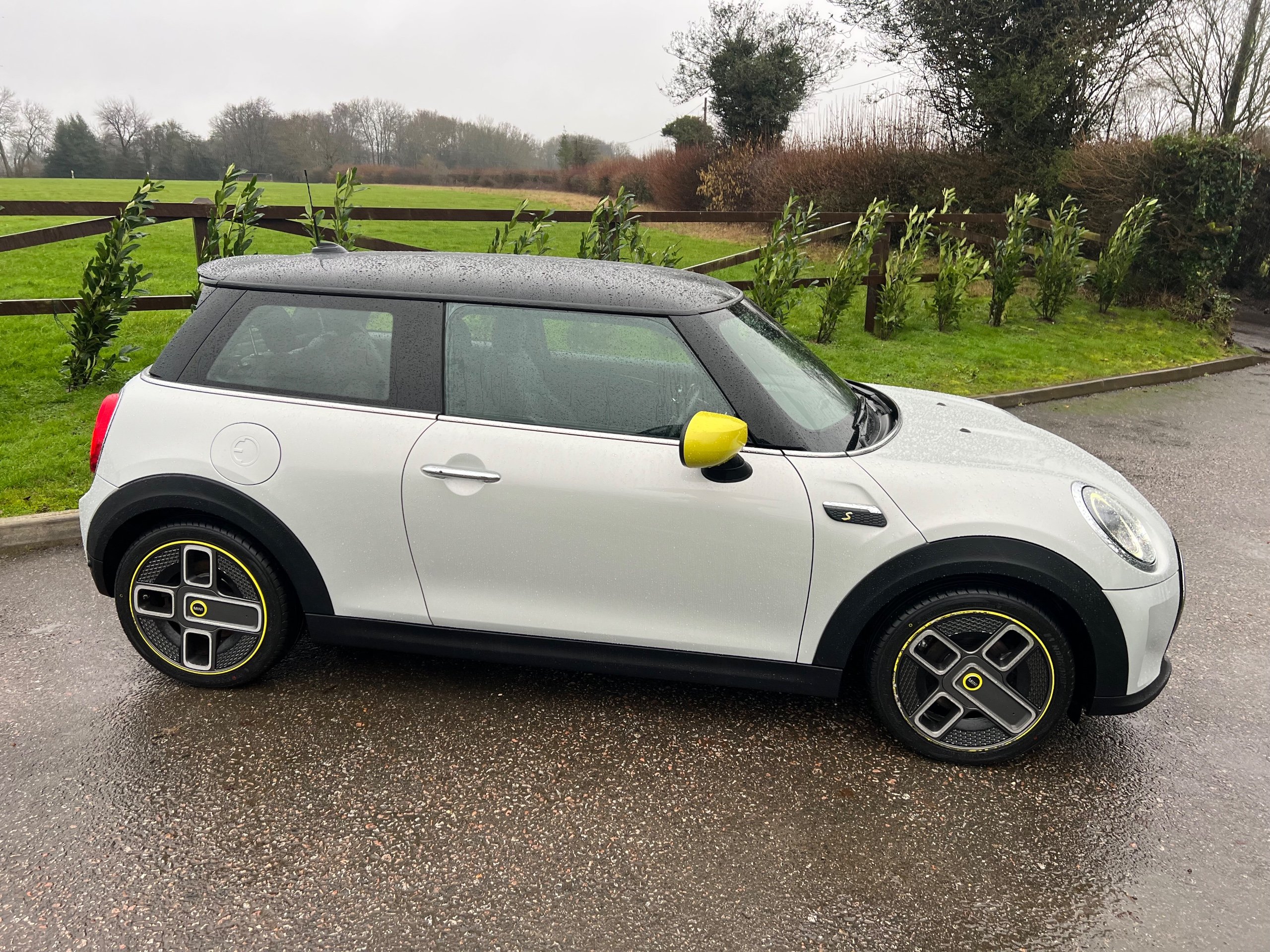 This 2021 Mini Electric Cooper SE 32.6kWh Level 2 Hatchback 3dr Electric Auto (184 ps) has only 40466 miles, ULEZ compliant, perfect for city & local driving. With its sleek design and 3 doors, this electric hatchback is not only stylish but also practical, comfortably seating 4 people. Its MOT is valid until 14/01/2026, ensuring peace of mind for the future. Featuring 17in Alloy Wheels, two-tone Electric Spoke, and striking Yellow Mirror Caps, this Mini stands out on the road. The exterior is finished in White Silver, complemented by Black Roof and Mirror Caps. Inside, the Black Pearl Cloth-Leatherette upholstery adds a touch of luxury to the cabin. Whether zipping through urban streets or cruising on the motorway, this Mini Electric offers a smooth and powerful ride, making it a must-have for eco-conscious drivers seeking a reliable and fun vehicle. Finance available, please call for details.